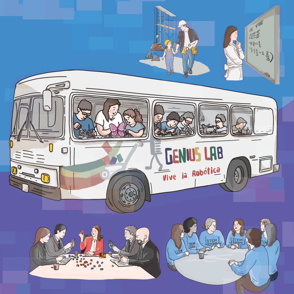 Con gran valentía, decidió llevar la ciencia a todas partes. Compró un autobús escolar amarillo y, desafiando a quienes decían que una mujer no podía manejar un vehículo tan grande, aprendió a conducirlo en solo tres días por calles estrechísimas. Así nació Genius Lab: un laboratorio móvil lleno de Legos y computadoras. Para empoderar a las niñas que se sentían excluidas, Lorna diseñó estrategias creativas, como mariposas robóticas rosadas, demostrando que la tecnología también es para chicas y es una herramienta muy poderosa.